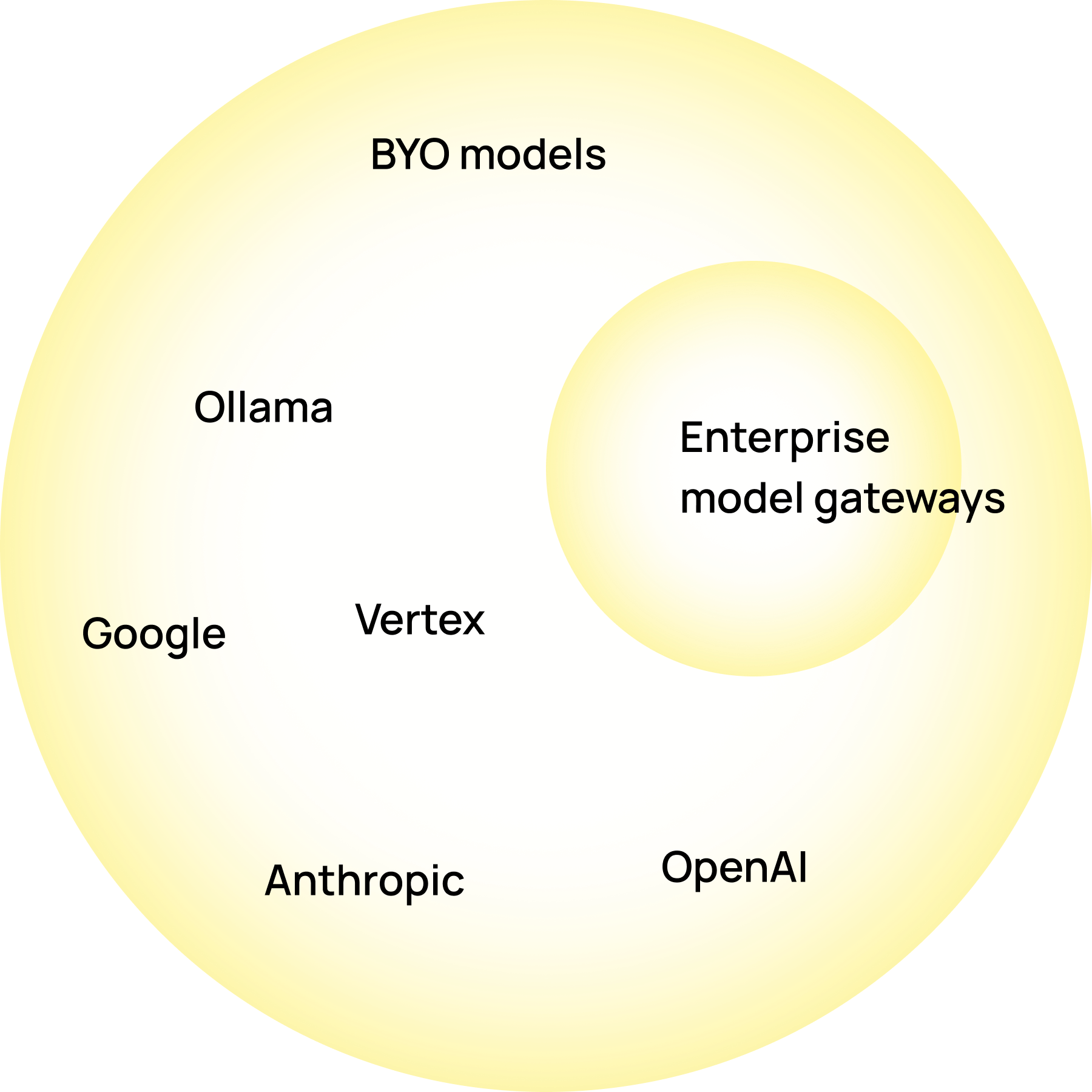 OpenAI, Google, or your own. Switch models for each case without rebuilding anything.